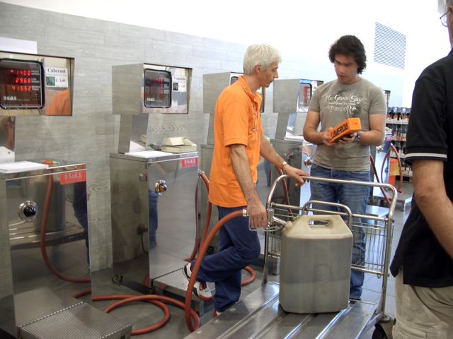 向こうの人はもちろんボトルでも買うんだけど、日常飲みのワインはこうしてガソリンスタンドみたいなシステムでドボドボ買っていくのだ。
