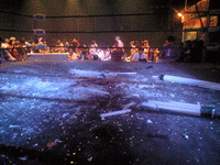 まぁモンタギュー家は焼肉屋で(モンタ牛:笑)、キャピュレット家は工場なのだけど。奥にはロミオやマキューシオが集うであろうバーまで設えてある。(写真は両家が争うとこ)