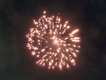 ちなみに3号玉は玉の直径が3寸(約9センチ)。打ち揚げると120メートル上空で直径60メートルの大きさで開く(参照)。間近で見ると大迫力。隅田川花火大会でも最大で5号玉。3号玉も多く使われる。そういう意味ではわりと本格的だ。
