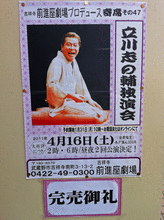 もう一週間前になってしまったが(あっという間だー)、立川志の輔独演会に行ってきた@吉祥寺前進座