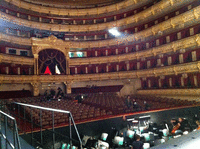 3時間以上にわたったリハーサルを見終え(こけら落とし初日前日のぴりぴりしたリハなんてめったに見られない。グリゴロービッチは終始どなってたしw。希有な体験)、劇場内の他の部分も隈無く見させてもらった。古い劇場も迷路だったけど、今回も迷路だったなぁ。廊下では金箔貼りがまだ進行していたw