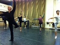 8年前もこの先生のレッスンを見たなぁ。ボクはアキーモフ先生のファンである(昔ロットバルト役で鳴らした人)。一枚目の写真の左側がアキーモフ先生。奥の方にモリも立っている。