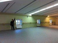 でも、大きいレッスン場は広すぎてダンサーには使いにくく(モリ談)、小さいレッスン場のうちいくつかは天井が低くてリフト(女性を持ち上げる)ができない。