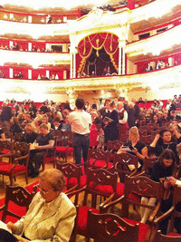 三枚目の写真にあるように、1階席は木の椅子である。これは旧ボリショイ劇場と同じ。そしてオーケストラピット(四枚目)もコンクリートから木造になったらしく、全体で響きがとても柔らかい。意外なほどいい音が響き、昨日も今日も音楽的には大満足だった。