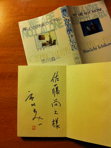 おいしい紅茶をいただいた。思ったよりヨーロピアンな内装で「イメージ違うなぁ」と思ったりした。でも「淋しいのはお前だけじゃない」がどれだけ好きかをご本人にお伝えし、本にサインをいただいた(写真)。