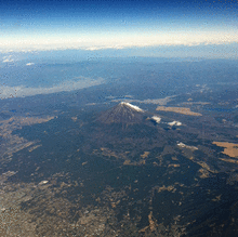 写真は空からの富士山。ちょっとわかりにくいけど真冬なのに茶色いね。