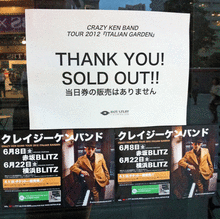 昨晩、クレイジーケンバンドの「CRAZY KEN BAND TOUR 2012 ITALIAN GARDEN」、ツアー初日に小石原はるか一行と行ってきたんですね(@赤坂blitz)。