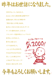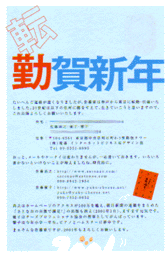 21世紀始まりの年。 ボクにとっては転勤の次の年。転勤・転居報告も兼ねた年賀状です。つまり「転勤+謹賀新年」ですね。 報告することが多かったので、全体に字が小さくなってしまい、ご老人方に不評でした(泣