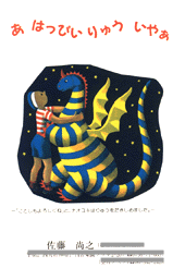 たつ年だから「はっぴい・りゅう・いやー」なのですね。 大好きな童話「エルマーとりゅう」から拝借して作りました。 この何年後かにリバイバルで「エルマーシリーズ」流行りましたよね。 でもまだこのころは狙いとしては渋かったのです。たぶん。