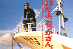 30歳になった次の正月です。 わりと受けたな、この年賀状。 なんか、まぁこんなバカみたいな年賀状出す人も少ないからねぇ。 ええ、写っているのは若い頃のボクです。 羅臼の漁港にロケで行った時に、シャレで撮った一枚。いまとは別人ですな。うはは。 ちなみにボディーコピーは「人生の初夏を迎えて、さとうはますます充実しとりますです。」と。