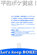 ボディコピーは、 それってある意味、人類が目指すユートピアじゃん。 と、2004年も「さとなお」は平和ボケボケの仕事、 そして平和ボケボケな書き物に邁進する予定です。 そのボケっぷりを、温かくお見守り下さいませ。 ※昨年出した「沖縄上手な旅ごはん」(さとなお著/文藝春秋刊)もぜひよろしく。 でした。2003年はアメリカ-イラク戦争の年ということもあり、そういう雰囲気。