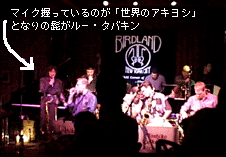 マンハッタンの44丁目の「Birdland」で素晴らしいおばぁちゃんを見た。 「Birdland」は言わずと知れたチャーリー・パーカーの伝説的なライブハウスである。 リニューアルして、また、この頃人気が出ている店だ。 店内はきれいで、何よりも特筆すべきはテーブルの配置がゆったりしていること。 スイート・ベイジルにしてもブルーノートにしてもウエイターが通れないほど椅子を詰め込んでいるが、ここはすごくゆったりしている。身体が楽だ。 今日は月曜日の夜。 「Birdland」のスケジュール表にはこう書いてある。 「The Legendary Toshiko Akiyoshi Jazz Orchestra Featuring Lew Tabackin」 毎週月曜日にここで「Toshiko Akiyoshi Jazz Orchestra」がライブをするのだ。 Toshiko Akiyoshi、つまり穐吉敏子。 そう、世界のアキヨシが久しぶりに定期ライブを始めたのだ。 1929年生まれの彼女は今年68歳。 もう41年、アメリカのジャズ界の第一線で演奏し続けている。 何回となくグラミー賞候補になりながら選ばれず(人種差別も確かにあったと思う)、「ダウンビート」の読者人気投票、批評家投票でも1位を数多くとって知名度はバツグンなのにレコードは売りに繋がらない。 食えない生活。 なんと一時はコンピュータープログラマーへの転職まで考えて学校に通ったりもしたとか… 出産、離婚、カクテルラウンジでBGMを弾くようなことまでして生きてきた。 運が向いてきたのは今の旦那ルー・タバキンと出会ってから。 オーケストラを組んでアレンジを数多く手がけ、「ミナマタ」などのメッセージ性の強い音楽を経て、そして辿り着いたオーケストラ…… アメリカ唯一の文化(と言ってもいいと思う)「JAZZ」にこうして半生をかけてかかわり続けてきた穐吉敏子。 若くして日本を飛び出して以来、東洋人に対する根強い偏見、蔑視、女性差別と闘いながらジャズ界の一線で活動してきたのである。 この前彼女の半生記「ジャズと生きる」(岩波新書)を読了したばかりの僕は、その半生の重みを背負った彼女のライブを聴けると思うだけで、しかもこのマンハッタンの「Birdland」で聴けると思うだけで、なんとなく涙ぐんでしまいそうになるのである。 がんばれ!アキヨシ! 時間になった。 彼女の旦那ルー・タバキンをはじめ15人ほどの白人を従えて彼女が登場する。 背中がちょっと曲がってきている。 68歳なのだ。 曲がってきてはいるが、背筋はピシっと伸びている。 まだ闘っているのがよくわかる。 その小さい小さい日本のおばぁちゃんは、 指一本で彼らを指揮し、勇壮にピアノを弾きはじめた。 あきれるほどに堂々としている。 なんだか誇らしい気持ちになる。 僕は彼女のレコードはあまり聴いていない。 彼女のアレンジは難解なものも多いから、わりと距離を置いてきたのだ。 「ミナマタ」みたいなメッセージ性の強いものも嫌いだった。 だけどいま目指しているものは、わりとわかりやすいジャズだと思う。 なんというかツボをはずさないように考えられたアレンジ。 とてもファニーでスタイリッシュでメリハリのきいたジャズだった。 テナーのルー・タバキンは最後の方に本領発揮。圧倒的な演奏だった。 穐吉敏子はオリジナルだった。 背筋の伸ばしてしっかりオリジナリティを主張していた。 オリジナリティは国境をこえる。 英語が少々しゃべれても国際人とは言えない。 本当の国際人とは「オリジナリティ」を持っている人のことだ。 もっと平たく言うと「自分を持っている人こそ、国際人」なのだ。 そういう意味で、穐吉敏子は真の国際人だ。 今宵、かのチャーリー・パーカーの「Birdland」に 東洋人がアレンジし演奏し指揮するオリジナルなジャズが流れた。 そして僕は感動冷めやらずホテルでこれを書いている。 僕はこのおばぁちゃんをとても誇りに思うのである。 酒でも飲まなけりゃ、ちょっと眠れそうにない。