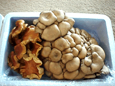 な〜んだ。な〜んだ。そのくらいで怒っちゃダメじゃない! と、放り出すわけにもいかないので、いろいろおいしい思いをした中から3つほどご紹介しましょう。 大丈夫。「マツタケがさぁ」「もみじ鯛がさぁ」とかそんなゼイタクな話ではないから。 というより、かなり質素。 ひとつ目は「きのこ」。 これは嵐山光三郎のホームページに書いてあった一文に惹かれて通販で買ったきのこセット。 そのホームページにはこう書いてある(無断引用すいません)。 10月はキノコがおいしい。マツタケは高いから買わなくてよろしい。ヤオヤさんへ行ってシメジ、エノキ、マイタケ、シイタケ、なんでもいいからありったけを買ってきて、バターでいためて醤油味をつけて食べるとうまい。山の天然のキノコを食べたい人は信州小諸の「きのこの森」(TEL0267-22-6665)へたのめば、2600円(送料こみ)でユーパックでいっぱいおくってくれます。原種のエノキダケがおいしい。うすクリーム色でツヤがよく森の生気があふれている。味の素の味がするヒラタケもとってもいい香りがする。クリタケもおいしいが、これに似たドクキノコがあるので要注意。黄色いムキタケはちょっと苦いが、その苦さがおいしいんですね。スギタケは白いキノコで、上等な寿司屋は握ったりします。 「きのこの森」へたのめば、いろいろとりあわせて、ドーンとおくってくれる。いろんな天然のキノコをあわせてキノコ汁にするのがいい。そこへ ゴハンを入れてキノコガユにしてごらんなさい。もう、おいしくてホッペタが落ちます。 即! 電話したですよ。 そしたら「きのこの森」のおばちゃん、 「いま雨降ってないからキノコあんまりないんです。 雨降ったらドンっと生えます。雨降るまで待っていただけますか?」 「ドンっと生えますか」 「はい。ドンっと生えます」 脳裏にヴィジュアルが浮かぶ。雨上がりの夜空にドンっと生えるキノコ達…… 結局「雨降ったらすぐ送ってください!」とお願いして逆さテルテル坊主を吊るして待つこと8日。我が家に雨の恵みが届いたのである。 ![]() 開けたとたんオレンジのような華やかな香りがブ〜ンと部屋中に広がり、まことにドンっと勢いのあるマイタケとシメジが現れた。 残念ながらクリタケとかムキタケとか、食べてみたかった種類は入っていなかった。季節的に遅かったのか……くやしいけど、でもこの芳香は、たまらん! ゆうこが「ホイル焼き」「キノコ玄米ごはん」にしてくれた。 八百屋のきのことは別物であった。小諸の雨の味がしたですよ。 いやホント。 あのジューシーさはいったいなんなのだろう。 ひと噛み、日本の秋の味。 ふたつ目は「白菜鍋」である。 知る人ぞ知る「ピェンロー」。白菜がおいしすぎる白菜のための鍋なのだ。 季節はじめの白菜が出ると、うちはまず、この「ピェンロー」をする。 本当は白菜がもっと安定した味になる冬のほうが(寒いから鍋がうまいという意味でも)おいしいのだが、単に「待ちきれない」のであった。そのくらいこの鍋はうまい。いや、単純なうまさでなくて、飽きが来ないうまさなのだ。 妹尾河童がいろんなところで大オススメしている鍋だからアナタもどこかで読んだことあるかもしれない。とりあえず一度トライしてみてください。白菜ファンになりますよ。 まぁ白菜が秋の味なのかどうかは、まぁ置いておいて、とりあえず11月になったら食べるべし。 作り方は超簡単。(5人分) 白菜一株(ザク切り。根っこに近い白い部分と青い部分に分けておく) 干しシイタケ50g・豚バラ500g(薄切り)・鶏のもも肉500g(ぶつ切り) 緑豆春雨(ひと袋)・ゴマ油・塩・一味とうがらし